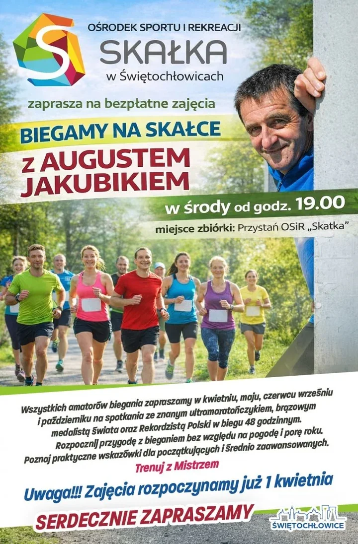 Wiadomość jest krótka, ale konkretna: August Jakubik ponownie poprowadzi zajęcia biegowe na Skałce. Dla świętochłowiczan to dobra okazja, żeby wskoczyć w buty i sprawdzić, ile energii zostaje po zimie.