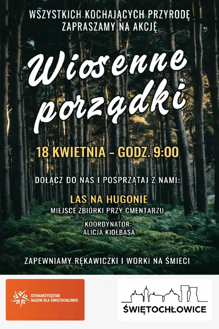 W Świętochłowicach wiosna zacznie się od wspólnej pracy, a nie od spokojnego spaceru. Na Hugonie pojawią się osoby, które chcą po zimie zostawić las czystszy niż go zastaną. Zbiórka przy cmentarzu ma prosty sens – wejść razem w teren i od razu zrobić pożytek dla miejsca, z którego korzystają na co dzień. Organizatorzy przygotują rękawiczki i worki, więc udział nie wymaga wielkich przygotowań.